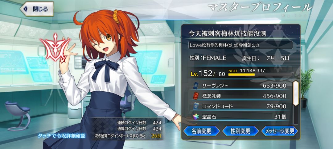 本来之前是说100坤天的时候就发的,但是太忙了完全忘了这茬,现在随便搞了一下。目前来看,作为福袋微氪党来看两个号的练度都挺不错的,可以自己配队随便打打了。
