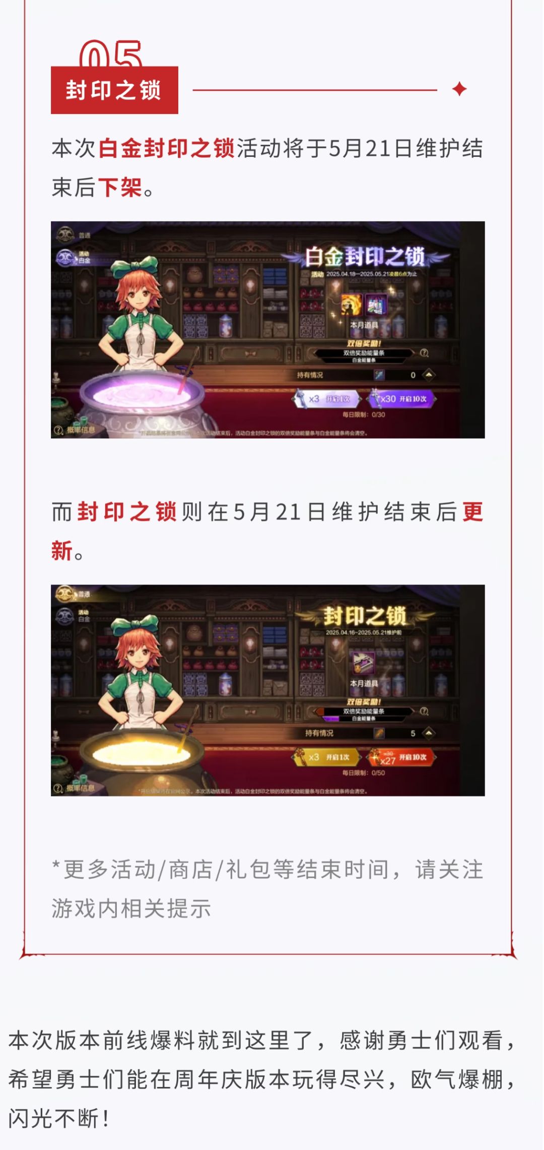 【版本前线】5月21日周年庆福利合集请查收
