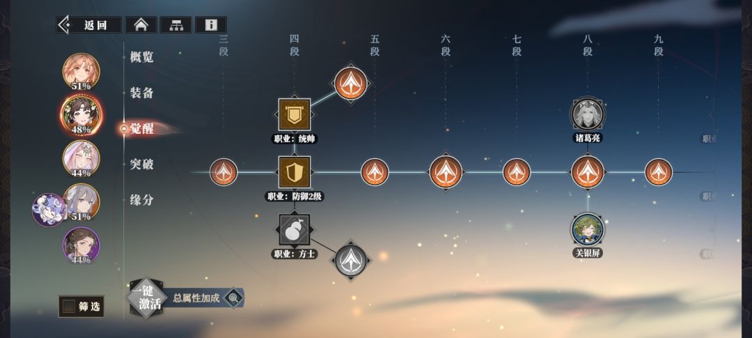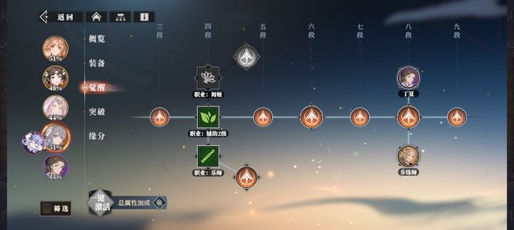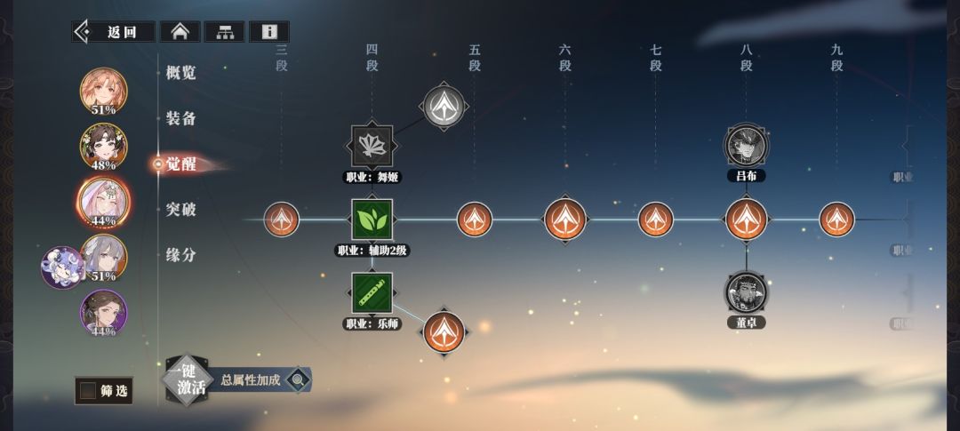 香香(骁将),邹翊(骁将),丁夏(统领),貂蝉(乐师),甄姬(乐师)