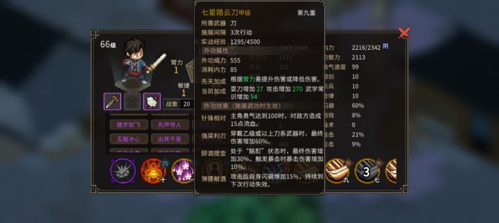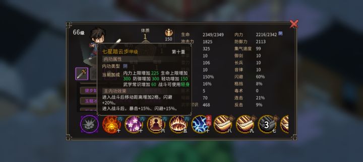 核心功法就是洛神步和睡梦心经,以及醉仙拳,武器倚天剑,洛神融合睡梦35%闪避,醉仙15%闪避,身材矮小以及林武道提供10%闪避,道法自然和趁虚而入一下提供60致盲,合计35+15+10+60=120闪避,在配个醉仙融合流血的技能就能玩了,除了慧园和老蔡需要软筋散+暴雨梨花针外,别的都能打打