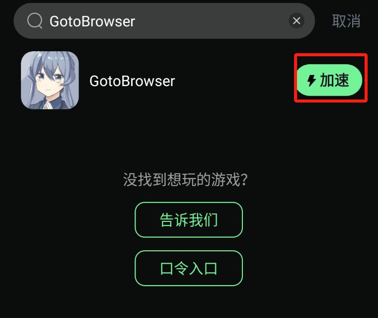 第三步:奇游内搜索【GotoBrowser】即可加速,【GotoBrowser】需要大家自行下载噢~