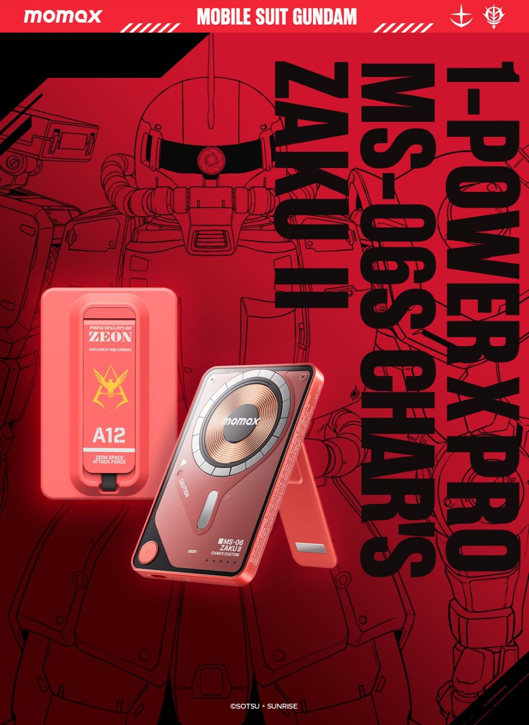 据说吉翁的“赤色彗星”——夏亚的专用机体【夏亚专用扎古】之所以能发挥出其他机体3倍速度的惊人表现,其秘诀就在于强大的能源支持。如今,知名数码配件品牌MOMAX(摩米士)与《机动战士高达》强强联合,推出最新产品,为各位指挥官带来持久的电力支援,为你的出行提供可靠的续航保障!
