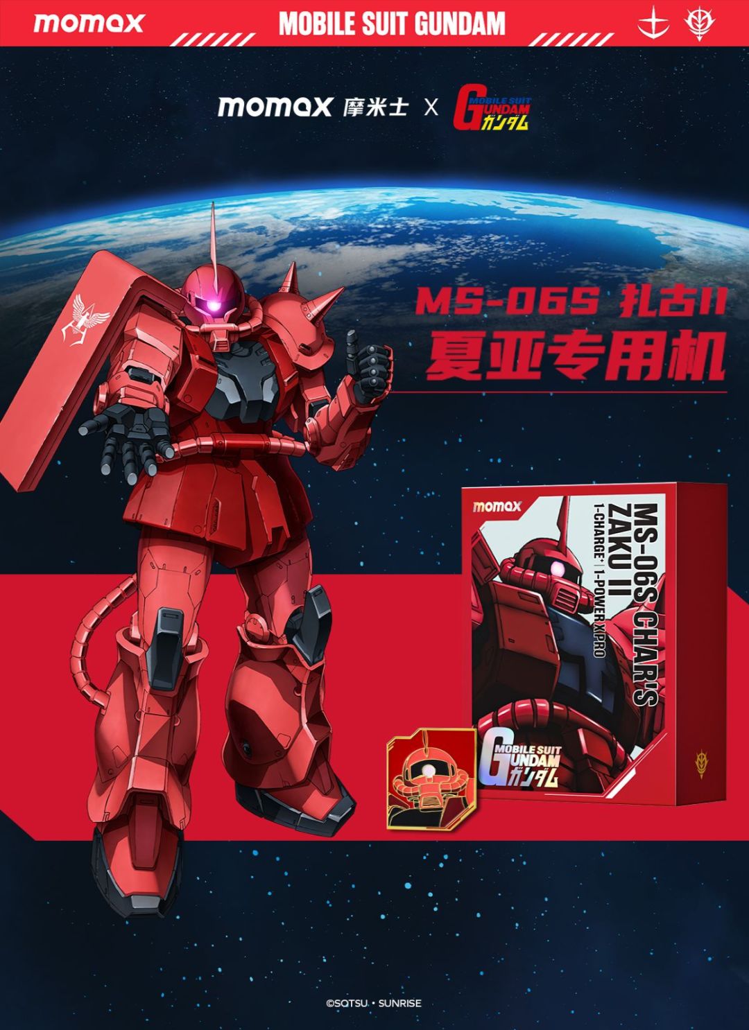 Momax:机动充能套装-MS-06S 扎古Ⅱ 夏亚专用机版(红色) =磁电宝+充电器+徽章 *1