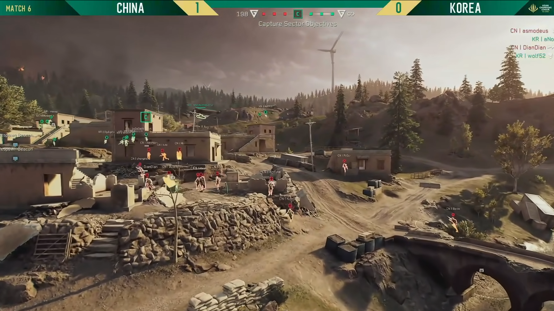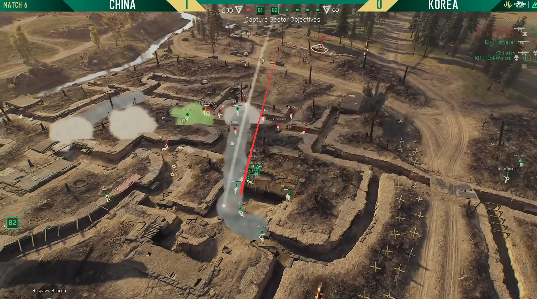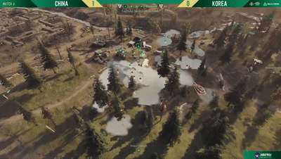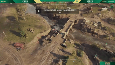 这恰好给中国队载具主战坦克极大的发挥空间,开局步兵直接进点,然后坦克跟上,几乎就是一波流就快速拿下了A点。甚至就在A点被拿下时,中国队的兵力票数还是198票,花费2两票拿下A点,这一波可以用兵不血刃来形容了。并且标记了高价值目标扩大的积分优势。当然当我们看完整场比赛之后,我们能够发现这其实是韩国队全盘战术的一环。