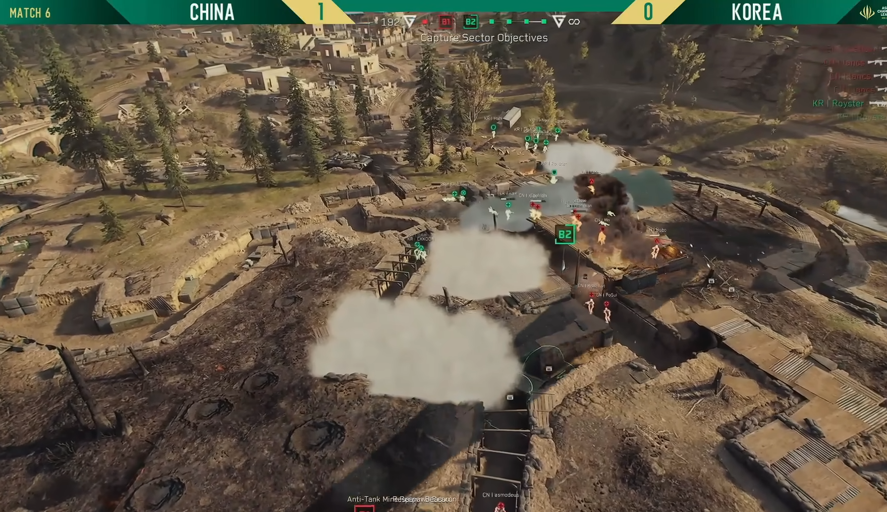 但是这样一来就又给了中国队主战坦克上迫击炮发挥的空间,因为迫击炮恰好可以炸到B1小房间的入口,这样一来韩国队虽然起初在点内绞肉时占有一定优势,但迫击炮的压制切断了后续的支援,因此很快B1就被中国队拿下了。