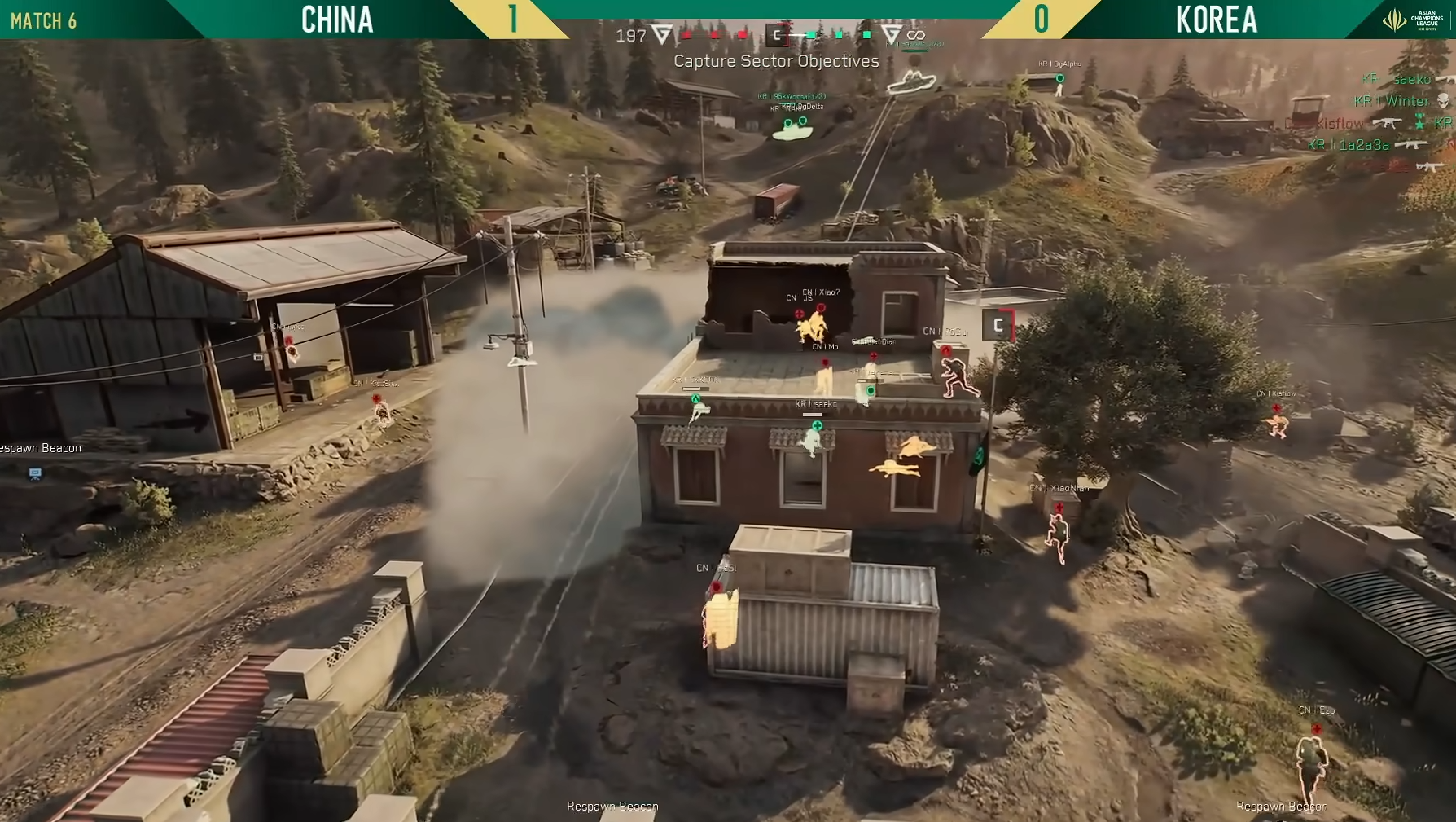 第二回合的比赛地图仍然是堑壕战,只不过双方攻防角色兑换,中国队作为进攻方,而韩国队将作为防守方。如果说第一回合双方的表现是死磕到底,那么第二回合角色互换之后这场对局就是双方将所有战术想里的打法都拿了出来,尤其是对于韩国队来说输掉这一局那就是“最后一战”了。