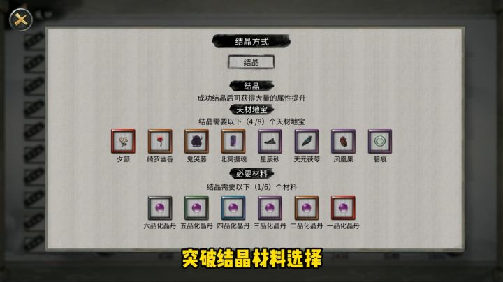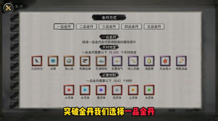玩过这款游戏的玩家都知道,玩家前期从练气期到元婴期的突破都需要一定的材料才能突破,而这些材料又分不同品质的选择,有时候全选橙色跟红色的材料并不是一个明智的选择,游戏后期暴击倍率带来的收益远远高于我们前期选的那多几百的攻击,接下来就是突破材料的推荐。