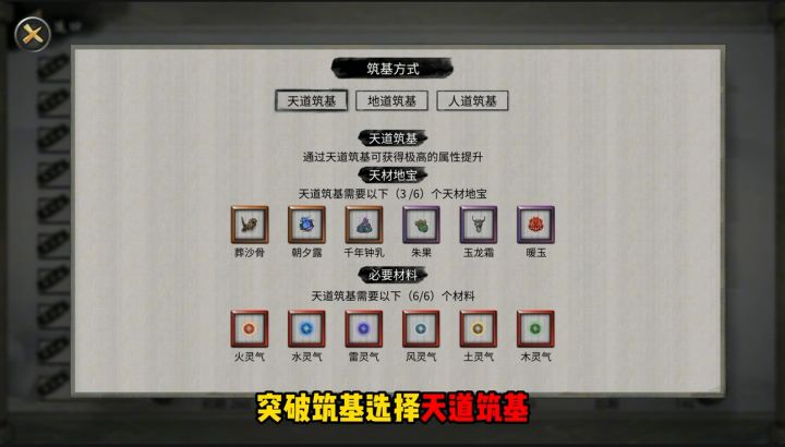 突破筑基选择【天道筑基】材料选择:葬沙谷+朝夕露+暖玉