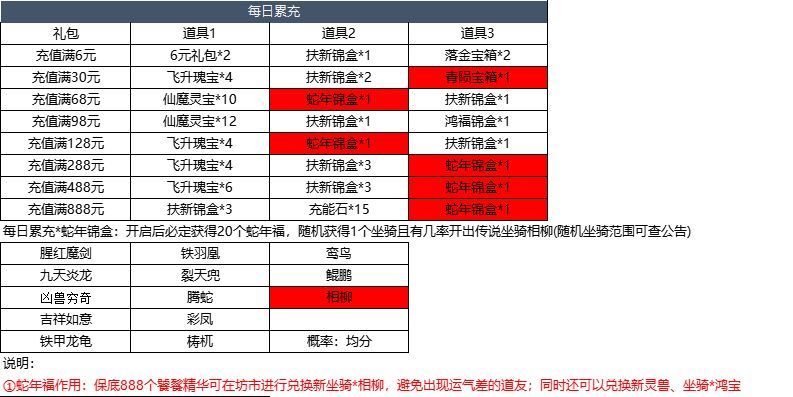 【活动简介】活动期间累计充值达到指定金额即可领取惊喜礼包!