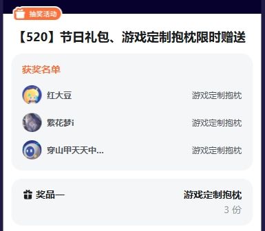 (已开奖)【520双重福利】节日礼包、游戏定制抱枕限时赠送