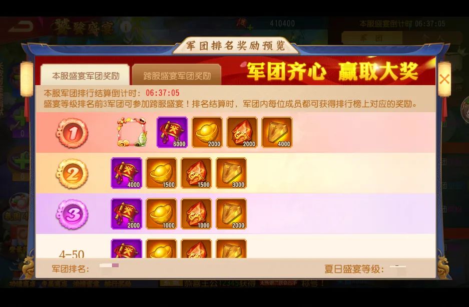 根据最后的排行榜(包括本服排行榜和跨服排行榜),在活动时间内,排行榜名列前茅的军团除了能收获一大波的排名奖励之外,还能获得活动专属称号、头像框和聊天气泡!