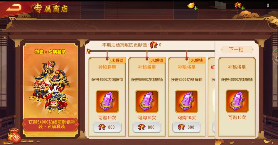 在个人专属商店中,只要主公在本次活动中个人获得的功绩达到指定条件就能解锁稀有资源的兑换,九霄装备、金色宝物、限定武将英主刘备和冢虎司马懿,千万不要错过呀!