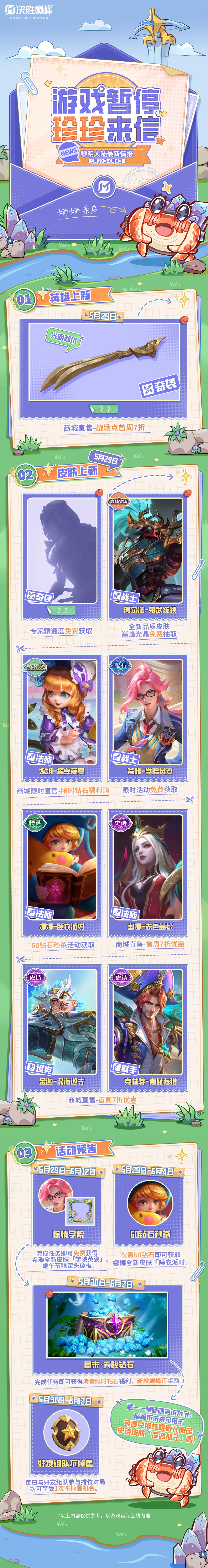 展信佳!是我,珍珍!不知道你在黎明大陆的探索之旅还好嘛?有没有交到更多新朋友呢?你不在的这段日子里,从河道来往的英雄们口中我又打听到了很多新的情报哦!打开看看都有哪些新鲜事吧~