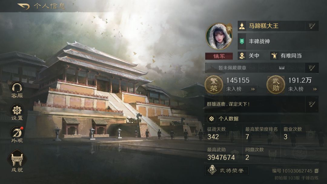 一赛季:进入游戏,体验至少三天,感受一下自己到底喜不喜欢这游戏,如果喜欢,可以把月卡充上,然后感受最刺激的一个赛季体验,一赛季平民推荐铜雀弓,用过都说好。接下来就是慢慢的积攒武将和战法了,月卡党基本一个赛季可以组合出一支新的T1级别的队伍。有以下注意事项:(1)游戏主打盟战,加个好盟是非常必要的,对于氪金玩家,建议加入高战盟打世界杯,可以充分感受激情战斗的魅力,而平民玩家可以优先考虑找盟内管理齐全、可以委托出战的郊区盟,会比较轻松,也能有更好的战斗体验。