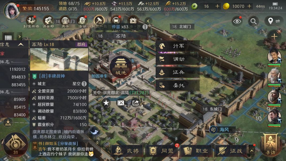 SLG盟战手游,简而言之,建设你的城池,招募你的将领(抽卡),自己搭配好队伍后,在盟里官员的指挥下完成抢占洛阳等目标的战略游戏,游戏的主要体验就是抽卡、配将、对战这三个核心,这点和其他同类型的游戏没有太大区别,如果是SLG游戏爱好者可以无脑入。