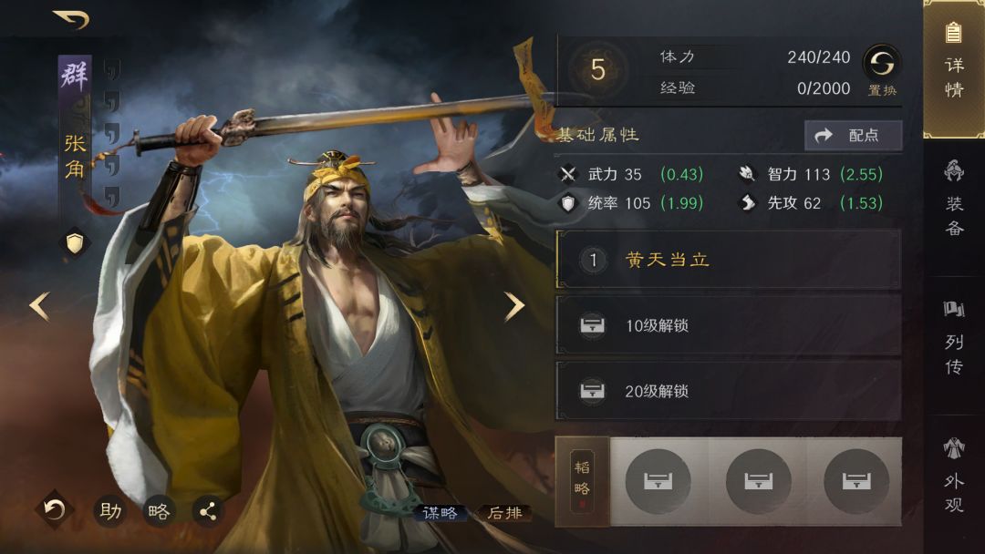 (3)张角:氪佬专属,黄巾队核心,满红输出爆炸,打主动队很强,即使是低红,也有一战之力,缺点是对战法要求较高,而且一赛季需要在小池子里面捞,因此只建议氪佬在一赛季入手。