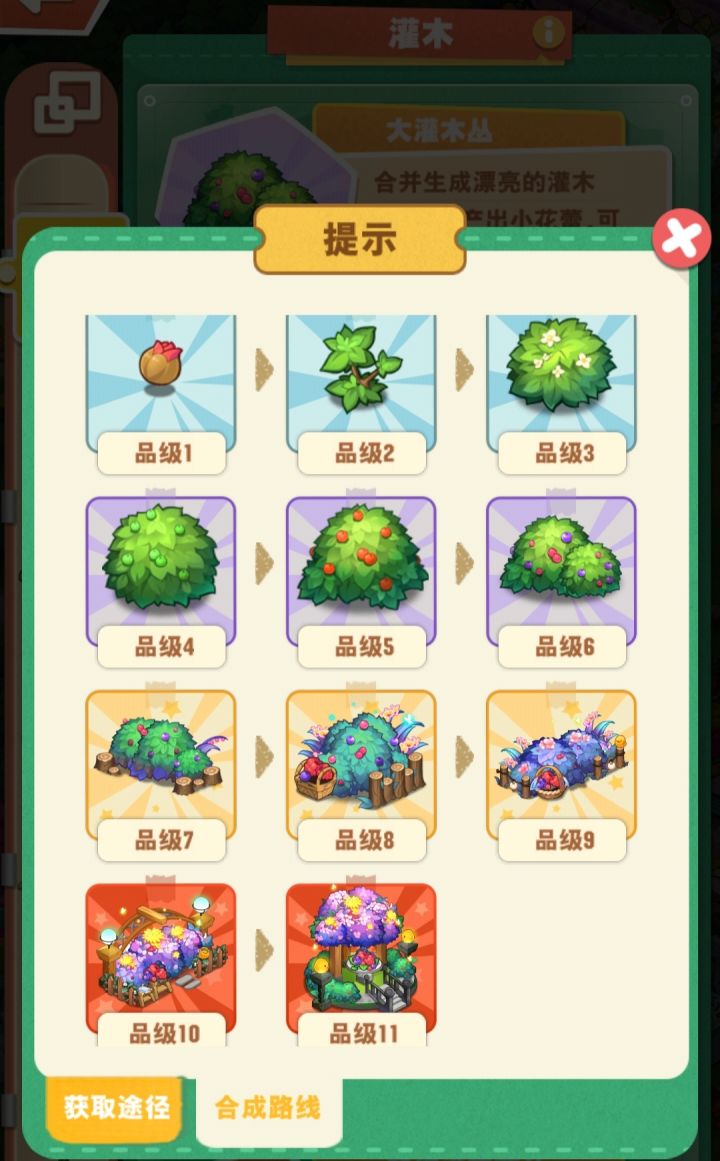 灌木温室(p1,停氪所以不全)产出灌木(p2灌木合成线)