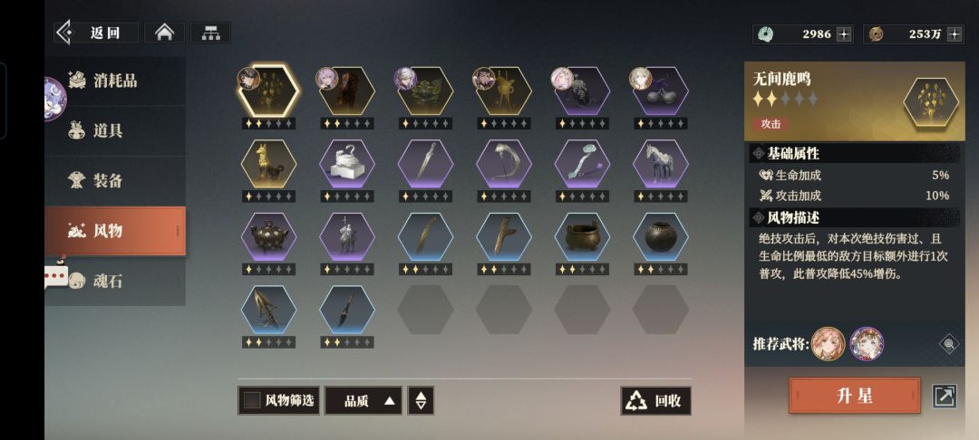 过了260送的自选风物加商店换的升星风物一下好起来了