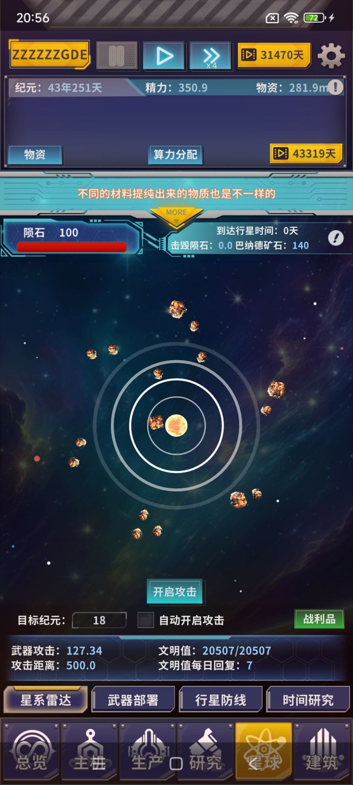 星球回复7点时,第一个陨石不建武器可以卡到40多纪元,突破等级时可以好好利用。