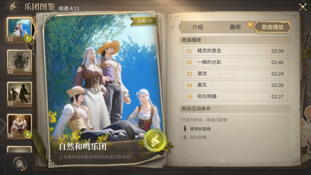 如果想让乐团为你歌唱,那就要看好乐团的互动条件,达成关键的互动条件成为乐团的粉丝后,乐团会开放点播歌曲的功能。不过,每个乐团的互动条件不同,需要穿着同样的时装、携带同样的宠物,或是使用和其他观众同样的应援方式等,冒险者们一定要细心观察~