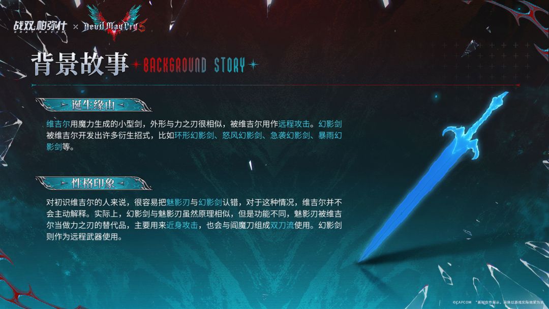 幻影剑不仅可以远程攻击,还能用多个幻影剑组成剑阵,环绕主人旋转,保护主人。幻影剑命中敌人后可以标记敌人,辅助维吉尔进行瞬移。