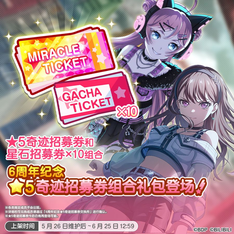 为庆祝6周年的到来,5月26日维护后,3种招募券礼包将限时上架!