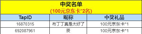 2位勇者获得:100元京东卡*1