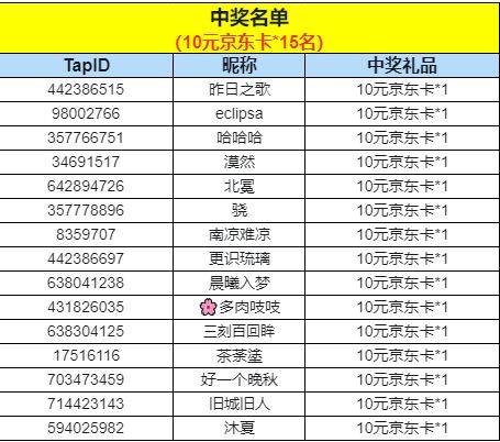 恭喜以下15位勇者获得“10元京东卡*1”