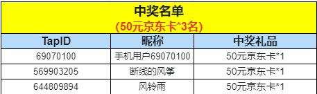 恭喜以下3位勇者获得“50元京东卡*1”