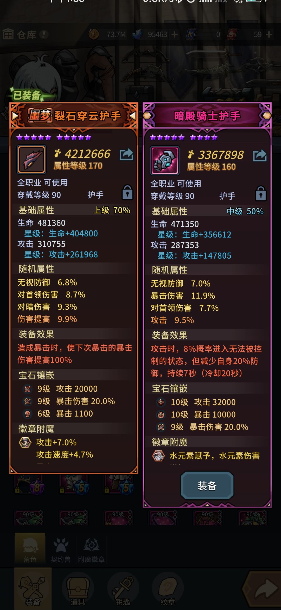 人物需要高攻速和老版本装备暗殿骑士手,高攻速触发护手的特效,鲨鱼减护手冷却时间让人物有大量时间输出。