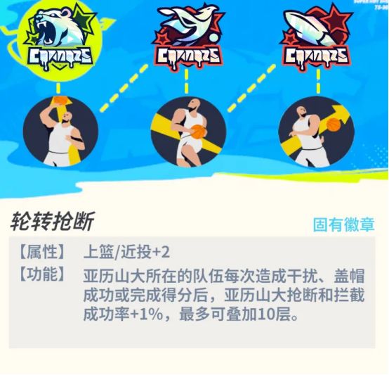 不同的强化类型为亚历山大分别提供了更强的抢断能力和更高的投篮命中率。各个徽章功能立竿见影,进一步拔高SGA上限。
