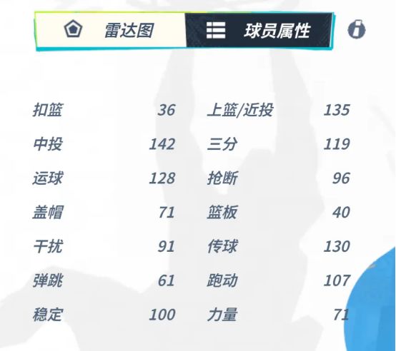 亚历山大拥有出色的上篮/近投、中投、运球、传球属性。能投善传,很好地扮演球队进攻核心角色。