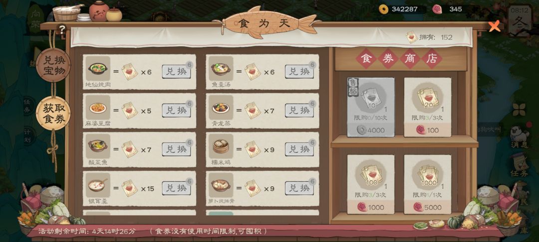 这里物资是按食券使用数量来进行解锁的,你想兑换好东西的话,就得进行囤积食券了,我前不久就屯了五千张食券,解锁最后一档换了夜明珠