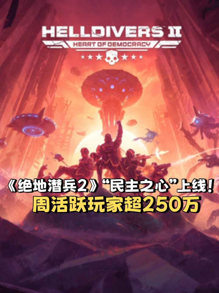 《绝地潜兵2》(Helldivers 2)迎来史诗级内容更新“民主之心(Democracy Strikes Back)”!本次更新标志着战火首次烧回“超级地球”本土,同时上线多项全新系统与战术机制,极大提升了战斗密度与策略空间。同时,官方也宣布:更新当周周活跃玩家突破250万大关,社区热度全面回暖!