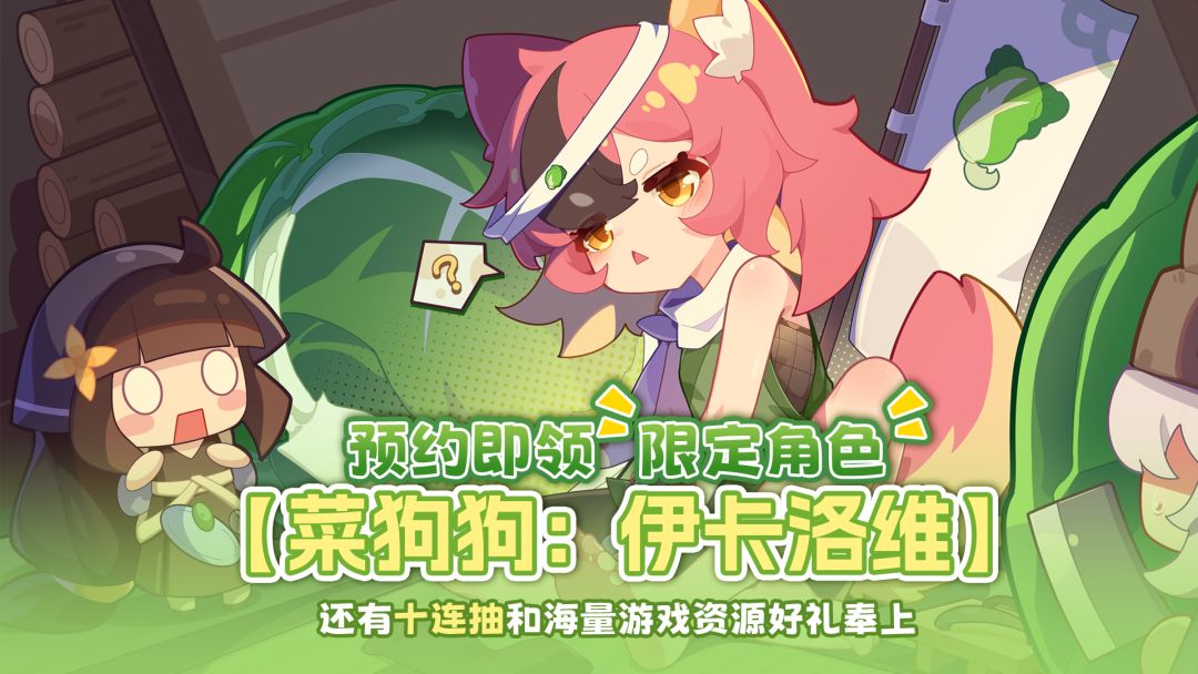 现在预约,公测上线即领限定角色「菜狗狗」(没错,就是本汪!)+10连抽+海量游戏资源!