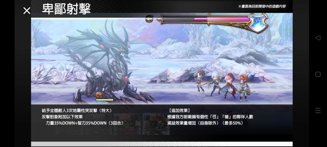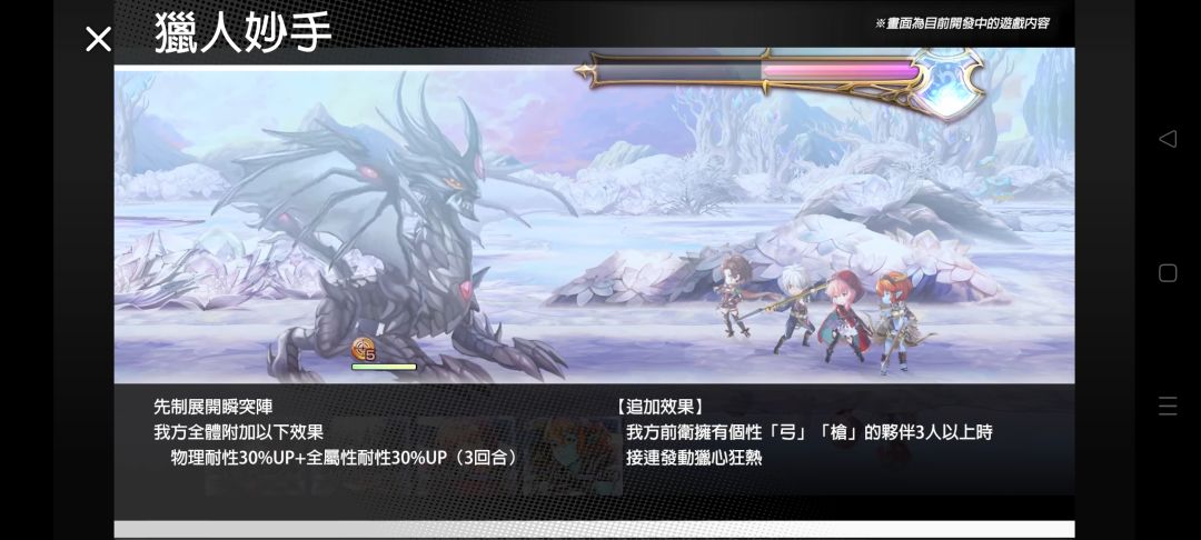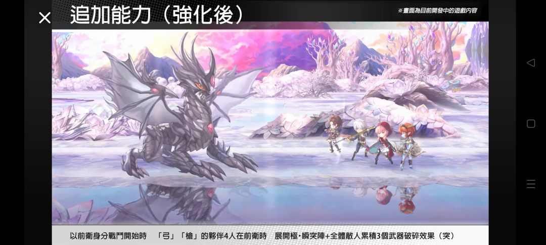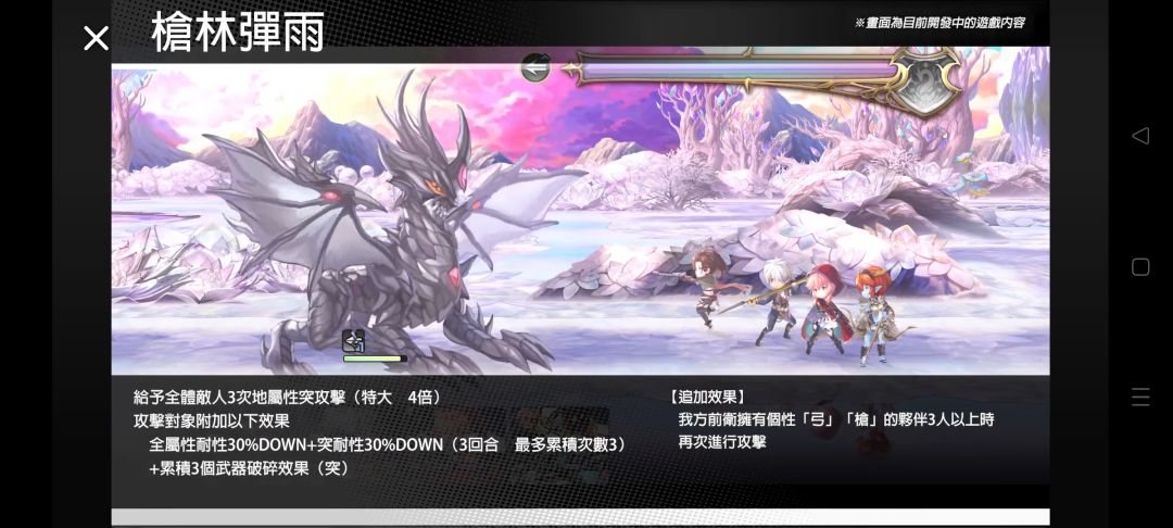 以前卫身分战斗开始时 「弓」「枪」的伙伴4人在前卫时展开极・瞬突阵+全体敌人累积3个武器破碎效果(突)