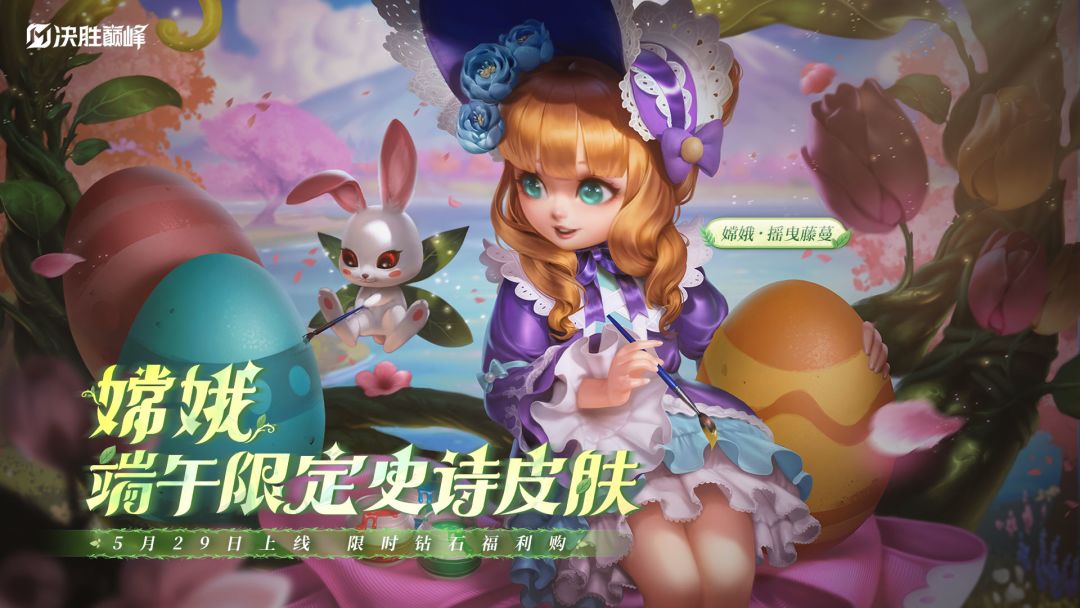 5月29日-6月29日,嫦娥端午限定史诗皮肤「摇曳藤蔓」将正式上架【商城】,售价880限时钻石,各类活动赠送的限时钻石都可以用于兑换该皮肤哟!喜欢「嫦娥」的友友们千万不要错过啦~