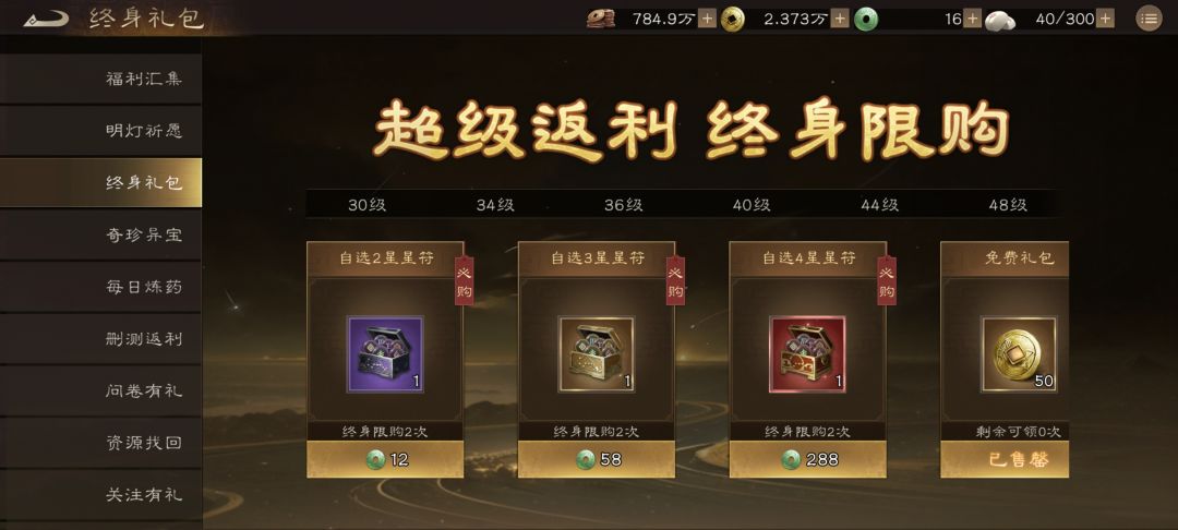 福利界面中有一个等级礼包,性价比极高但是中小氪可以根据需要酌情购买,不用全扫