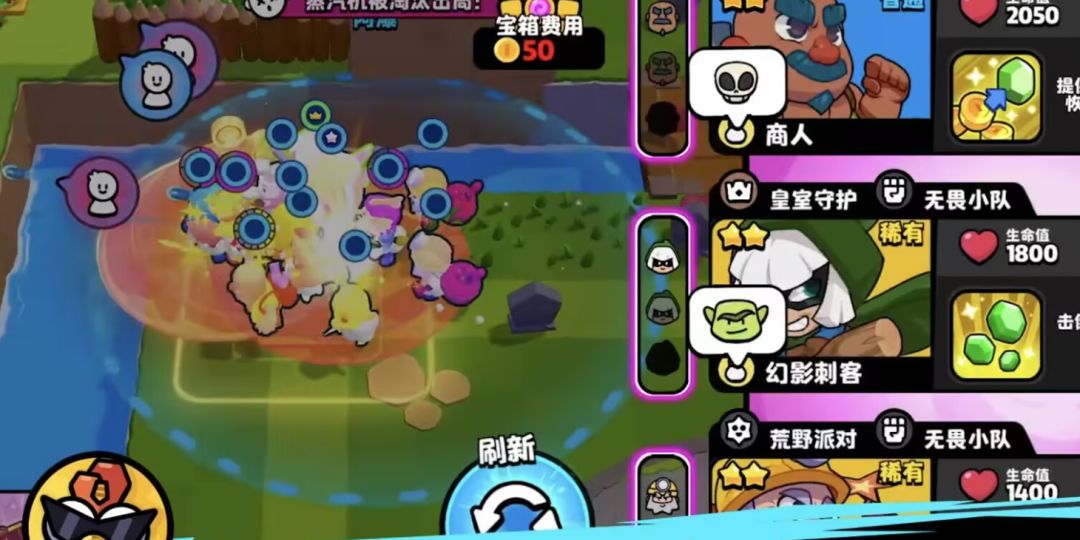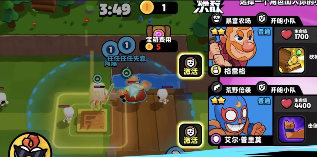 如果敌人穷追不舍也没有关系,这里阿爆教大家一个小技巧,我们在打架之前先囤够开箱子的金币,如果血量陷入劣势我们直接开箱,利用战斗天使的回血技能搭配开朗小队的增幅效果直接给敌方一个小小的大惊喜。