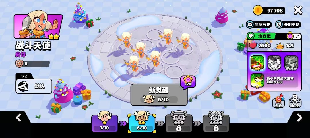 战斗天使是一位治疗型角色,拥有皇室守护和开朗小队这两个羁绊。
