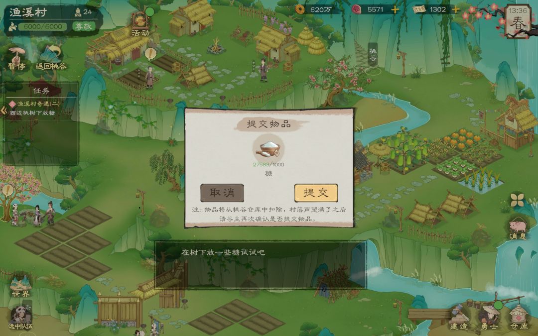 任务流程(1)达到八规模后,在渔溪村杂货铺商人那接取任务