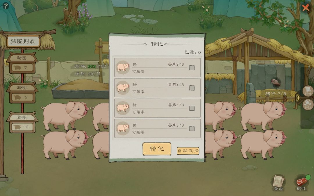 3. 猪圈的建造个数:限量3个,一级可容纳五只猪,二级可容纳十只猪