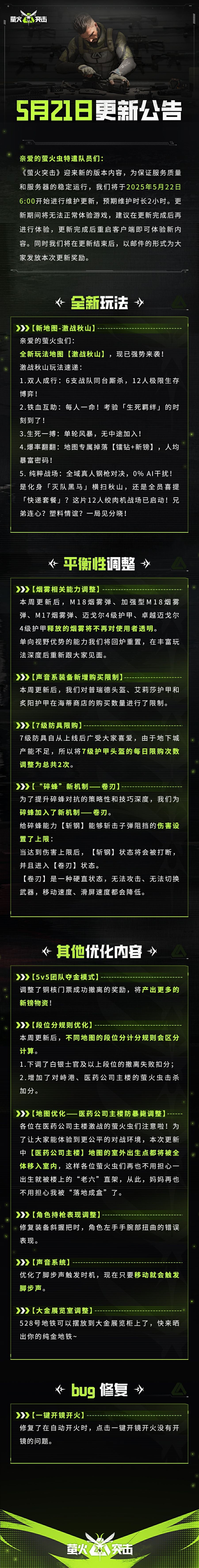 更新公告|全新玩法「激战秋山」来袭!单向烟机制调整!