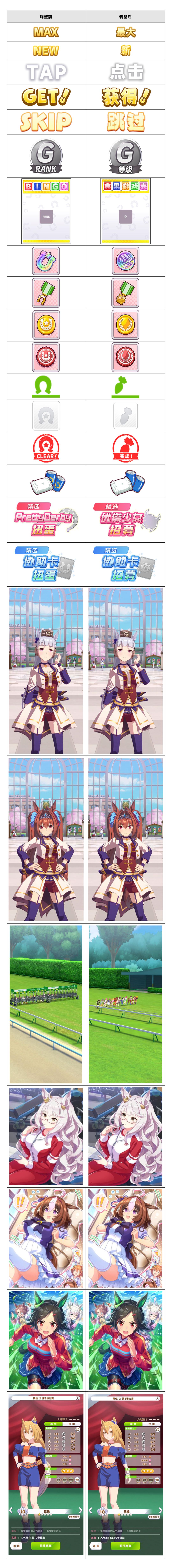 本次版本更新后,将对部分游戏内英文UI、角色立绘、场景模型等进行重新设计,并调整了部分比赛名称、NPC名称、道具名称等相关文案,详情如下: