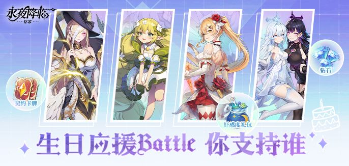 伊莲会在社区帖子评论区开设守护者的专属生日应援区,参与活动即可100%获得【钻石*100】礼包!评论区解锁一定数量,全服还可获得累计【钻石*200、契约卡牌*1、蓝色礼物*5】奖励!