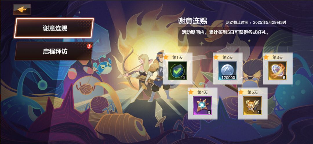 活动期间内,冒险者累计签到5日可获得各式好礼。