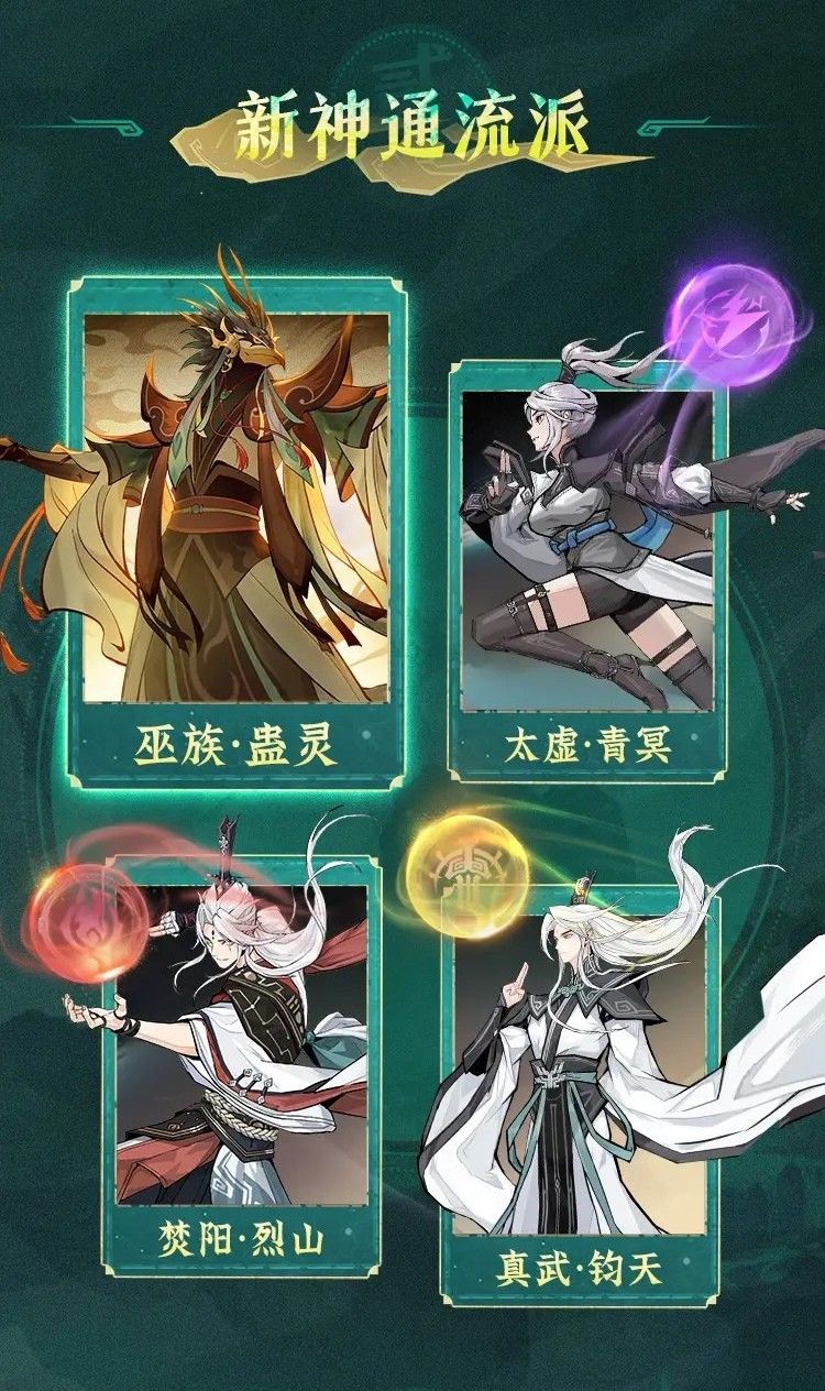 | 巫族•蛊灵 | 持续毒伤 | 蛊虫寄生/群体引爆 | | 太虚•青冥 | 高爆高伤 | 雷霆万钧/伤害爆炸 | | 焚阳•烈山 | 持续灼烧 | 地火喷发/瞬间融化 | | 真武•钧天 | 高伤破盾 | 剑气纵横/破盾神技 |