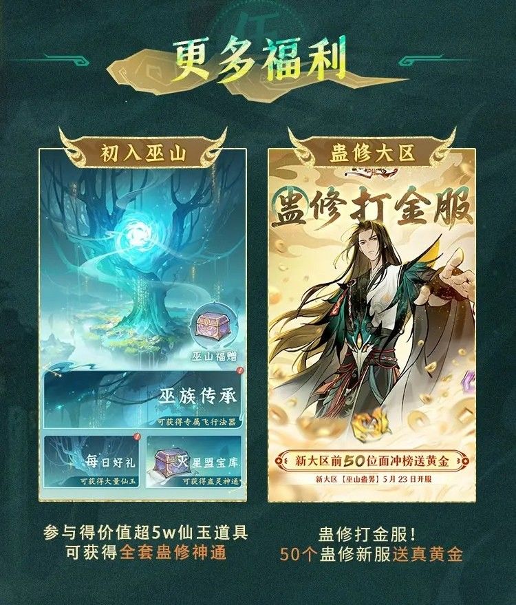 白嫖盛宴·冲榜暴富▸ 肝帝福利:登陆参与巫山活动5W仙玉+全套蛊修神通。