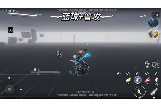 切人入场,点按两次蓝球,点按普攻,攒满300真魔人值开一段大,连点普攻,开二段大结束。