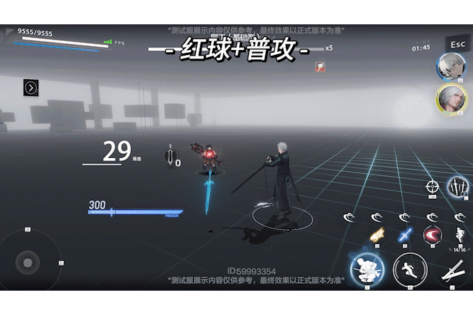 切人入场,点按红球并衔接普攻,攒满300真魔人值开一段大,连续点按普攻打完一整套普攻,开二段大结束。